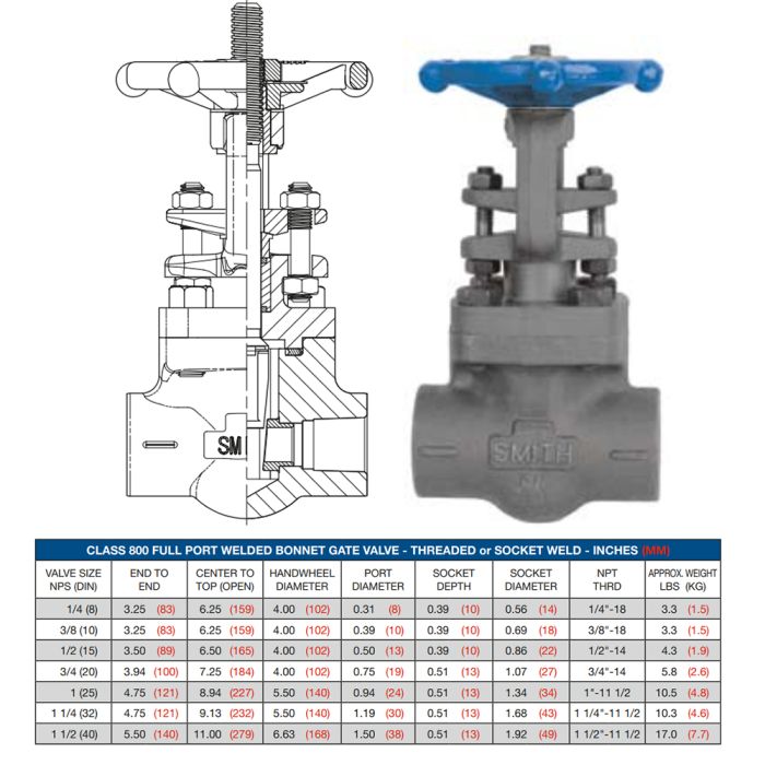 Smith Forged Gate Valves feature an outside stem and yoke (OS&Y), are available in Class 150-2500, and have conventional or full ports with either threaded, socketweld, buttweld or RF ends. All are manufactured in accordance with API 602 and ASME B16.34 standards.