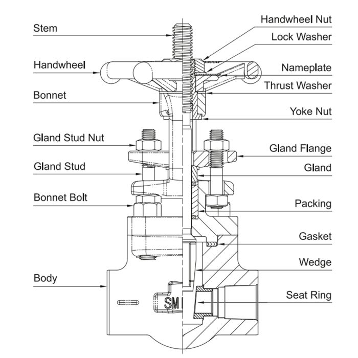 Smith A105 gate valves are forged carbon steel valves, typically used for on/off flow control rather than regulating flow. They are made from ASTM A105 material, known for its strength and mechanical properties. These valves are commonly used in pipelines to completely shut off or allow full flow of fluids. They are available in various sizes and pressure classes, with various end connections.