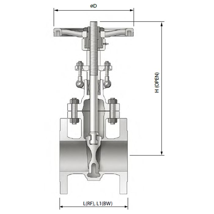 PK adopts an H-shaped flexible wedge of which the size is 3" and larger for Class 150 and 2" and higher for Class 300/600.