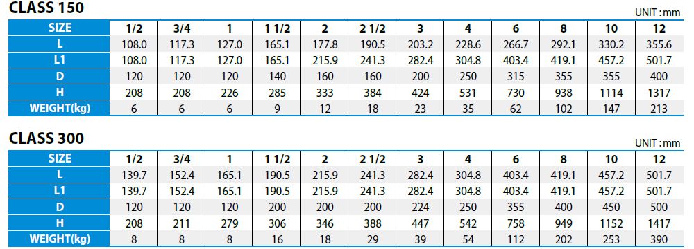 Investment casting shall be manufactured up to 1 1/2" for class 150 and 300.