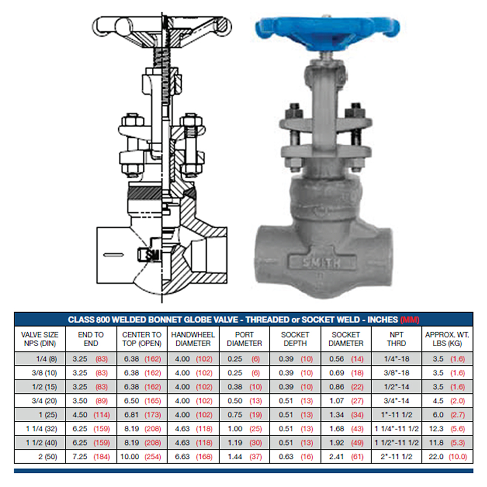 Smith Standard Globe Valves feature an outside stem and yoke (OS&Y), and are available in Class 150-1500 in conventional port with threaded, socketweld, buttweld or RF ends. All are manufactured in accordance with API 602 and ASME B16.34 standards.