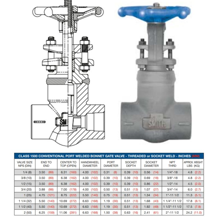 Smith Forged Gate Valves feature an outside stem and yoke (OS&Y), are available in Class 150-2500, and have conventional or full ports with either threaded, socketweld, buttweld or RF ends. All are manufactured in accordance with API 602 and ASME B16.34 standards.
