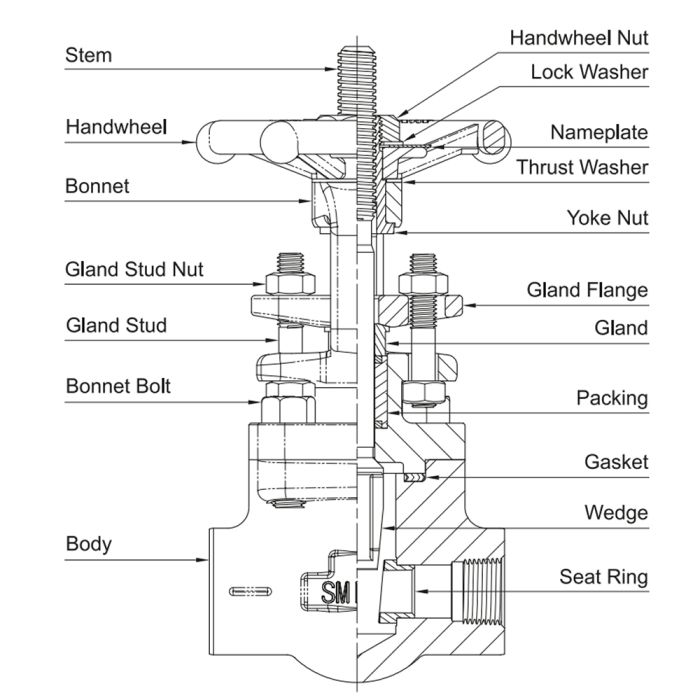 SMITH 316 Stainless Steel Gate Valves are industrial valves used to fully open or close the flow in a pipeline, offering excellent resistance to corrosion and chemicals. These valves feature a gate-like disc that slides to control flow and are often built to industry standards like API 600, ensuring reliability. Key characteristics include the use of stainless steel for durability, live-loaded packing for low emissions and less frequent adjustments, and compliance with NACE standards for use in challenging environments.