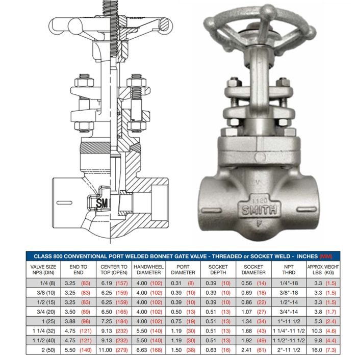 Smith Forged Gate Valves feature an outside stem and yoke (OS&Y), are available in Class 150-2500, and have conventional or full ports with either threaded, socketweld, buttweld or RF ends. All are manufactured in accordance with API 600 and ASME B16.34 standards.