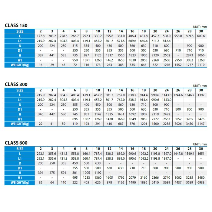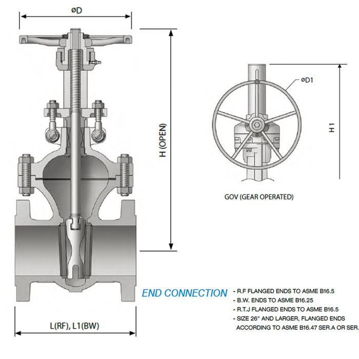 -Ring type joint flanged ends (R.T.J) conform to ASME B16.5 and the end to end dimension follows ASME B16.10. The other special end connections may be supplied as required by customer.
