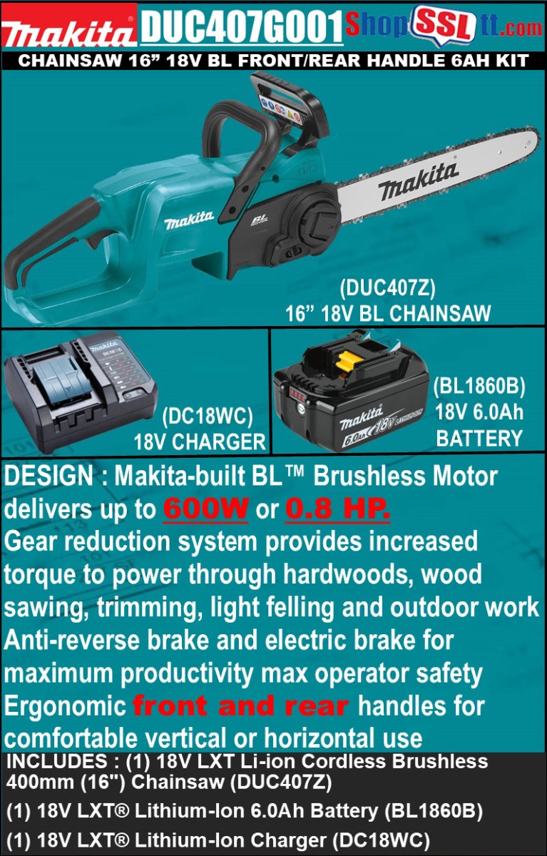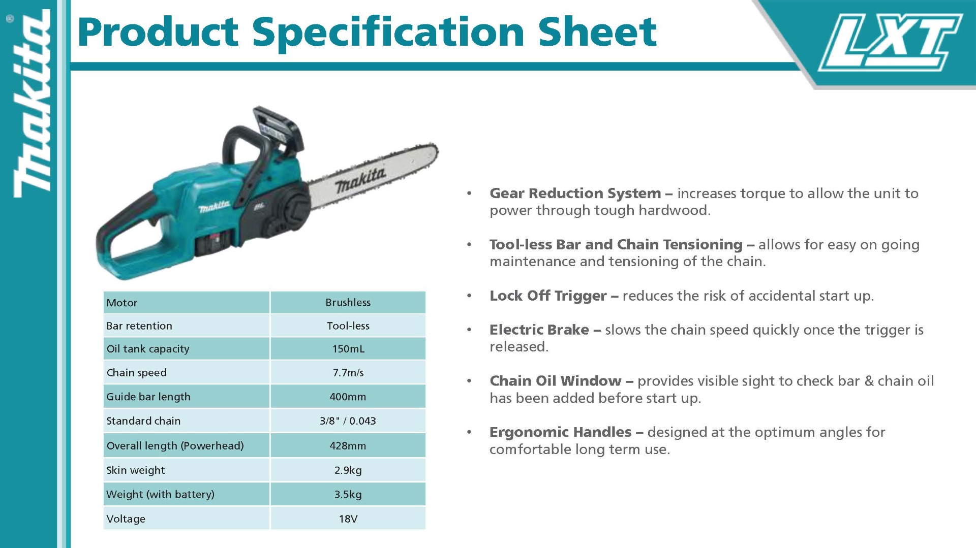 (1) 18V LXT Li-ion Cordless Brushless 400mm (16") Chainsaw (DUC407Z)