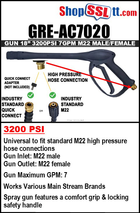 GUN 18"3200PSI 7GPM M22 MALE AND FEMALE CONNECTION FOR PRESSURE WASHER