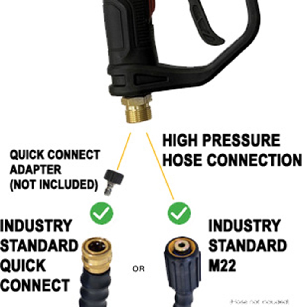 This 3200 PSI Pressure Washer Trigger Gun includes Universal Spray Guns for cold water are designed to replace or upgrade your existing spray gun for your pressure washer. This spray gun is equipped with a trigger safety lock-out and can be used with pressure washers with a standard M22 spray wand connection. Fits M22 high pressure hose connections. Its ergonomic design and easy pull trigger helps reduce hand fatigue for all day use. It works with Honda, TroyBilt, Craftsman, Karcher, Simpson and many other gas pressure washers.