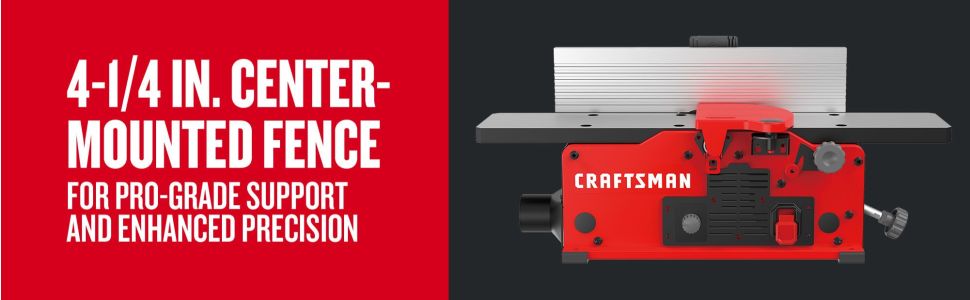 SUPPORT & ACCURACY: 4-1/4-in. Center-mounted fence gives needed support throughout the cut for accurate edge jointing