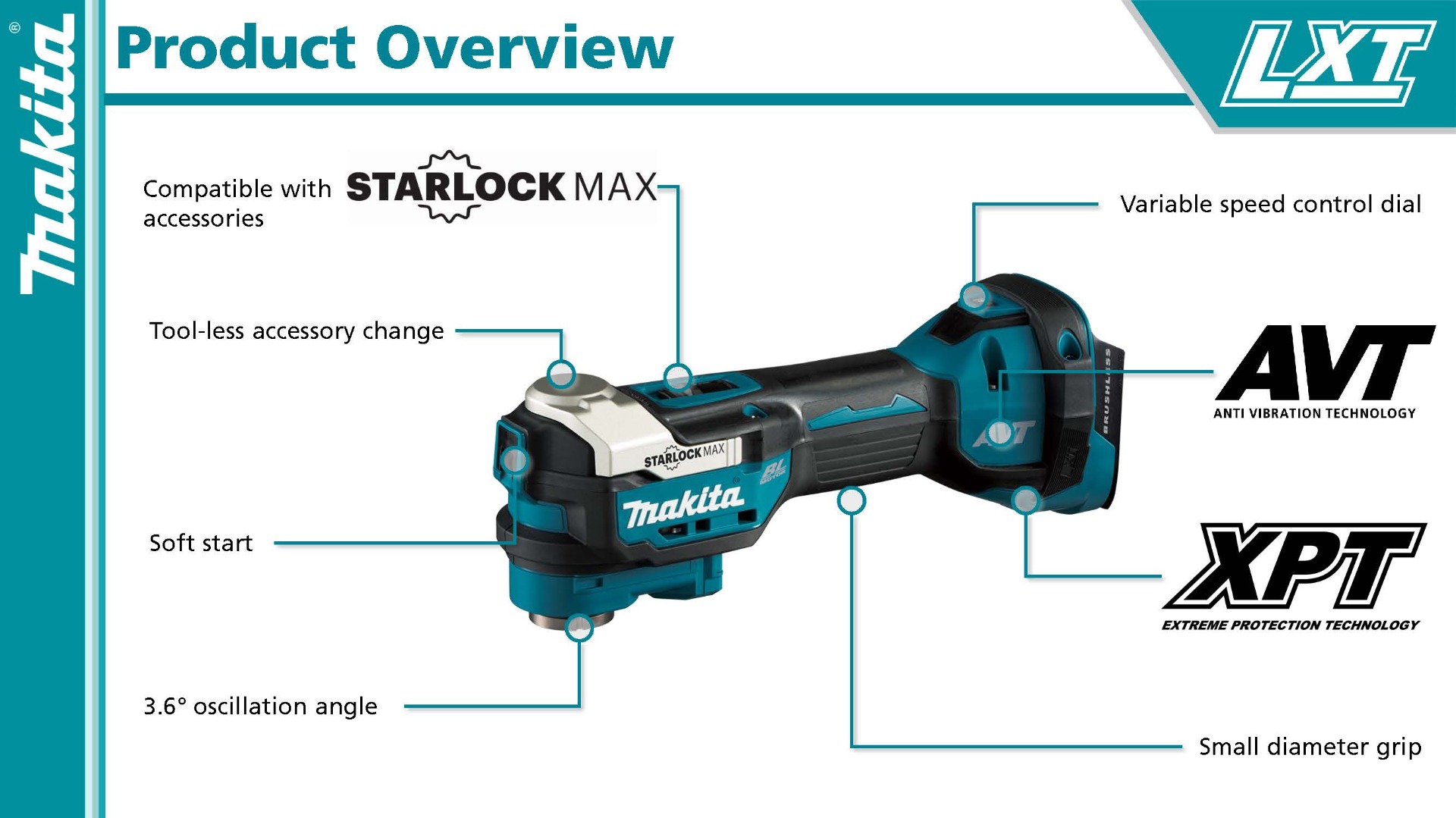 3.6° oscillation angle engineered for faster, more aggressive cutting and sanding