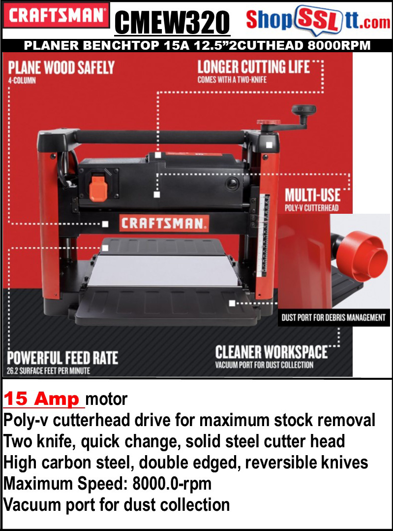 INCLUDES: (1) CMEW320 Benchtop Planer