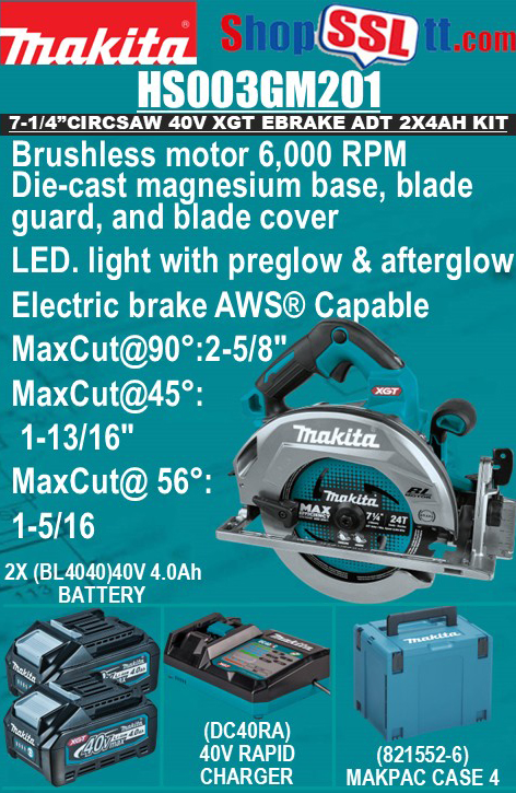 SAW CIRCULAR 7-1/4" EBRAKE 40V XGT 2X4AH BATTERY ADT SS AWS 6000RPM