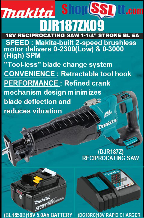 SAW RECIPROCATING 1.25"STROKE 18V BL+ 5AH BATTERY 2300RPM 2SPEED