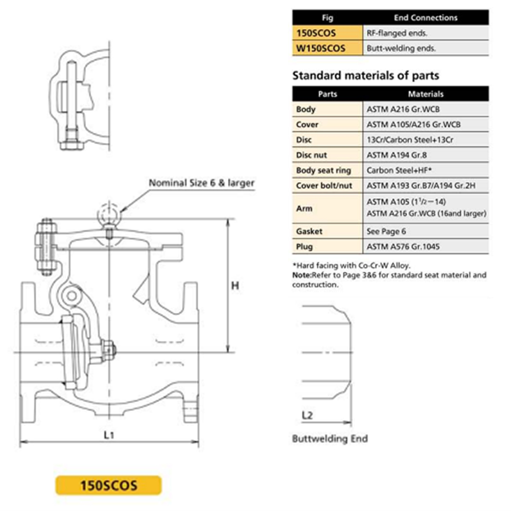 SWING CHECK VALVE 150# FS BB RF 2" TRIM 8 13%CR-1/2HF