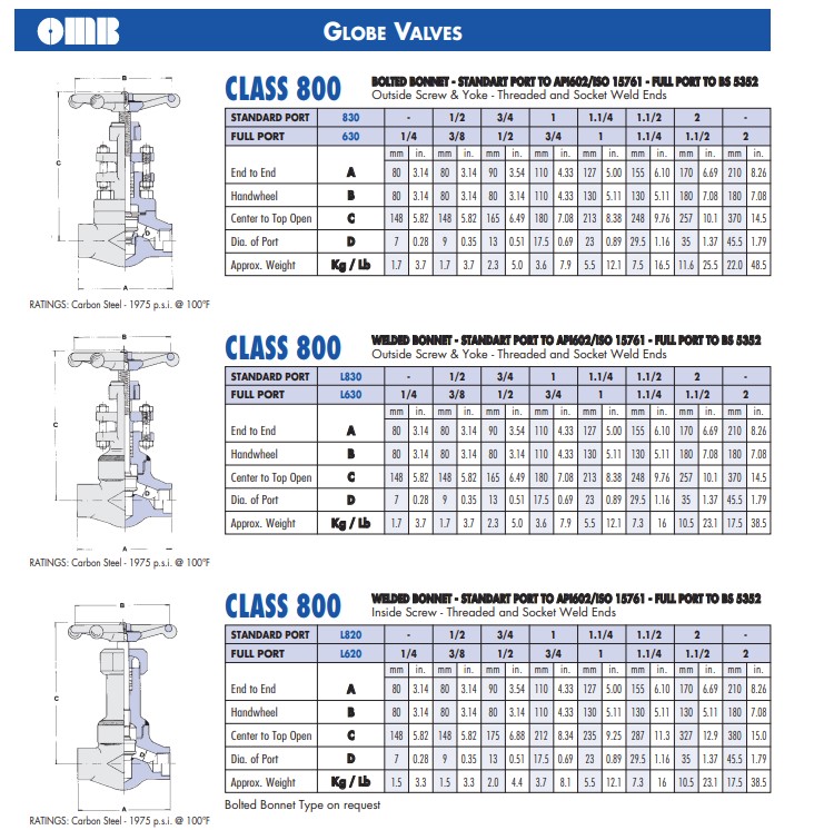 - Threaded, Socketweld, Buttweld, ends class 800 to 1500