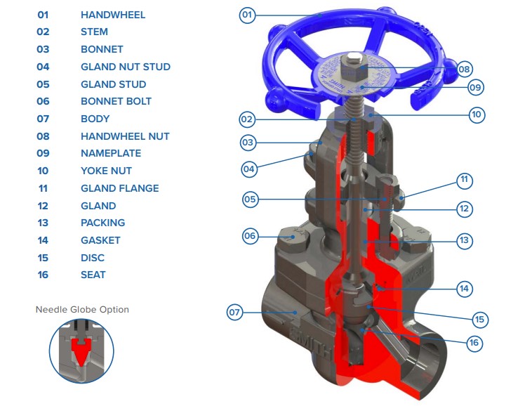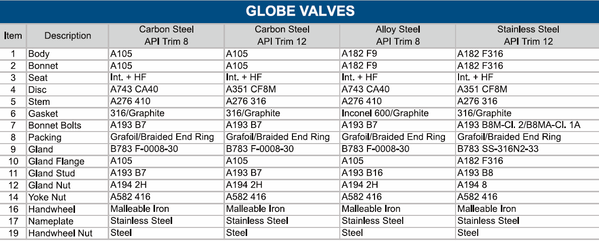 Globe valves are closing-down valves in which the disc moves squarely on and off the seat, making the port opening directly proportional to the travel of the disc. This proportional relationship makes them ideal for applications requiring precise flow regulation. For enhanced control, the disc can be designed in parabolic, needle, or vee-port types. The short travel between open and closed positions also makes globe valves well-suited for frequent on-off service. These valves are unidirectional and are typically installed with fluid pressure applied under the disc.
