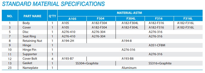 The swing check valve can also be mounted to the vertical position, provied the disc should not reach the valve position. However, the closing moment of disc by weight is very low in fully-opened position, so the valve tends to close late. In order to overcome such slow response to flow retardation, the disc may be supplied with a lever-mounted weight or with spring loaded.