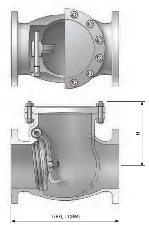 Heavy-balanced weight insures that disc goes to seat immediately upon cessation of flow and minimizes water hammer.