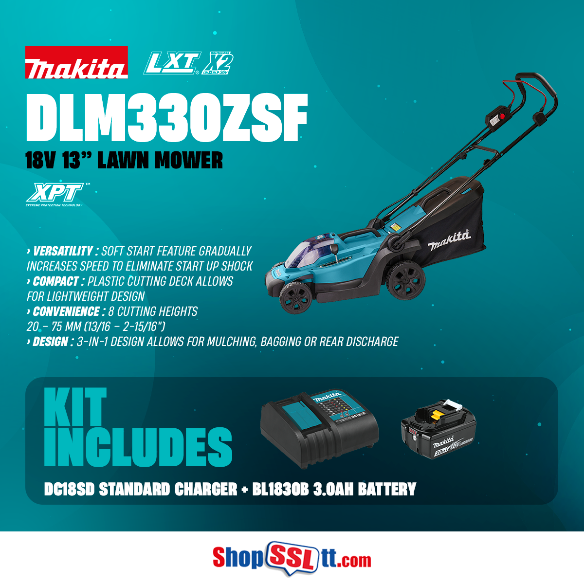 (1) 18V LXT Li-Ion Cordless 33 cm (13") 3 in 1 Lawn Mower (DLM330Z)