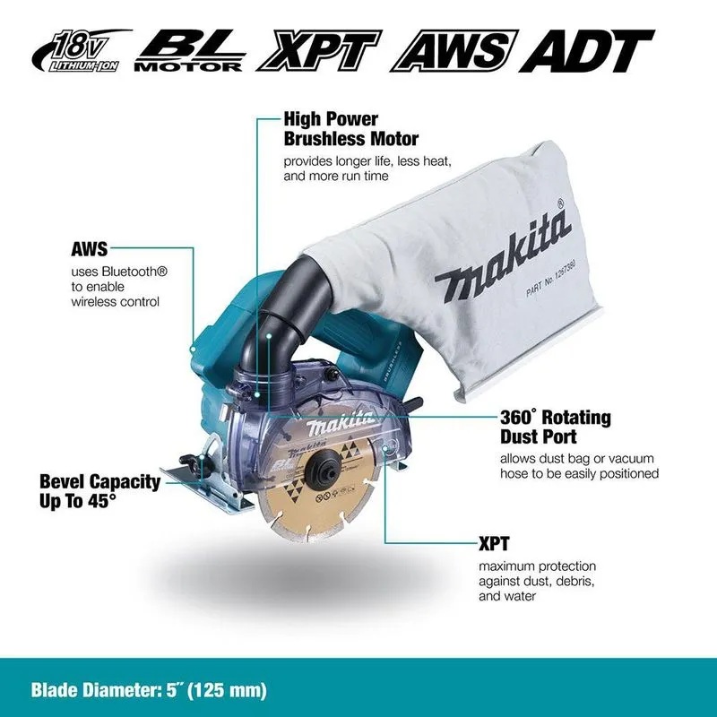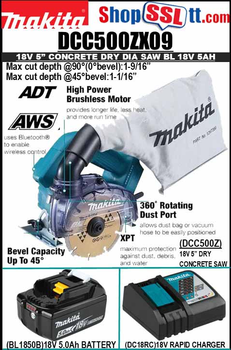 SAW TILE CONCRETE 5"DRY BL 18V 5AH AWS 8800RM MAX 1-9/16"@90