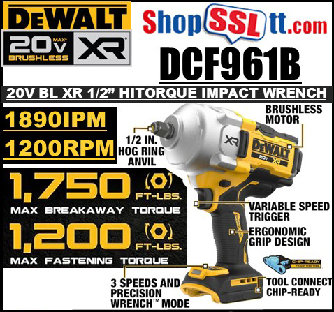 INCLUDES : (1) DCF961B cordless 1/2 in. Impact Wrench (Tool Only)