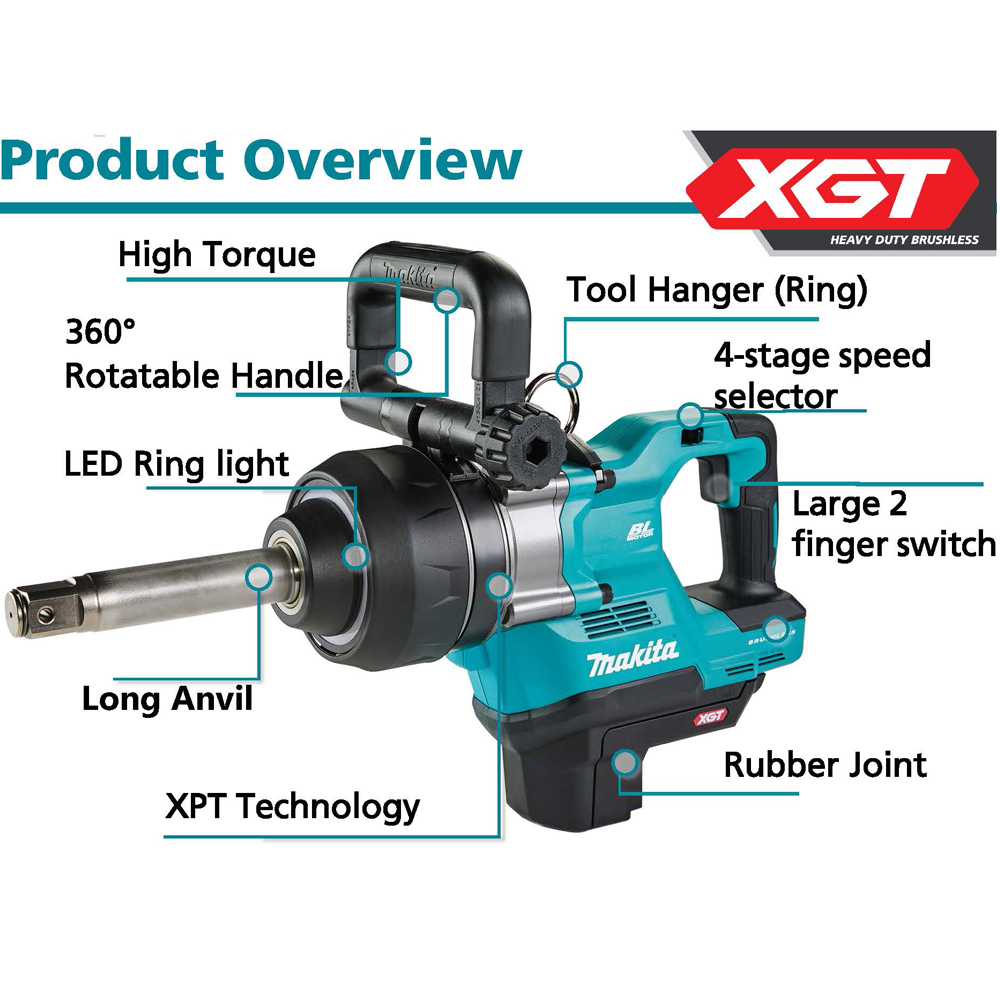 (1) 40V max XGT® Brushless 4-Sp. High-Torque 1" D-Handle Extended Anvil Impact Wrench w/ Friction Ring (GWT10Z / TW010GZ)